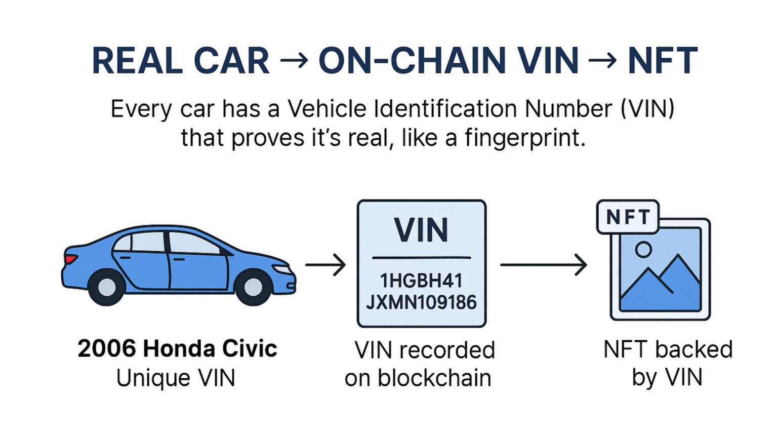 That means the NFT isn’t just digital — it’s connected to a real-world vehicle, verified on-chain.